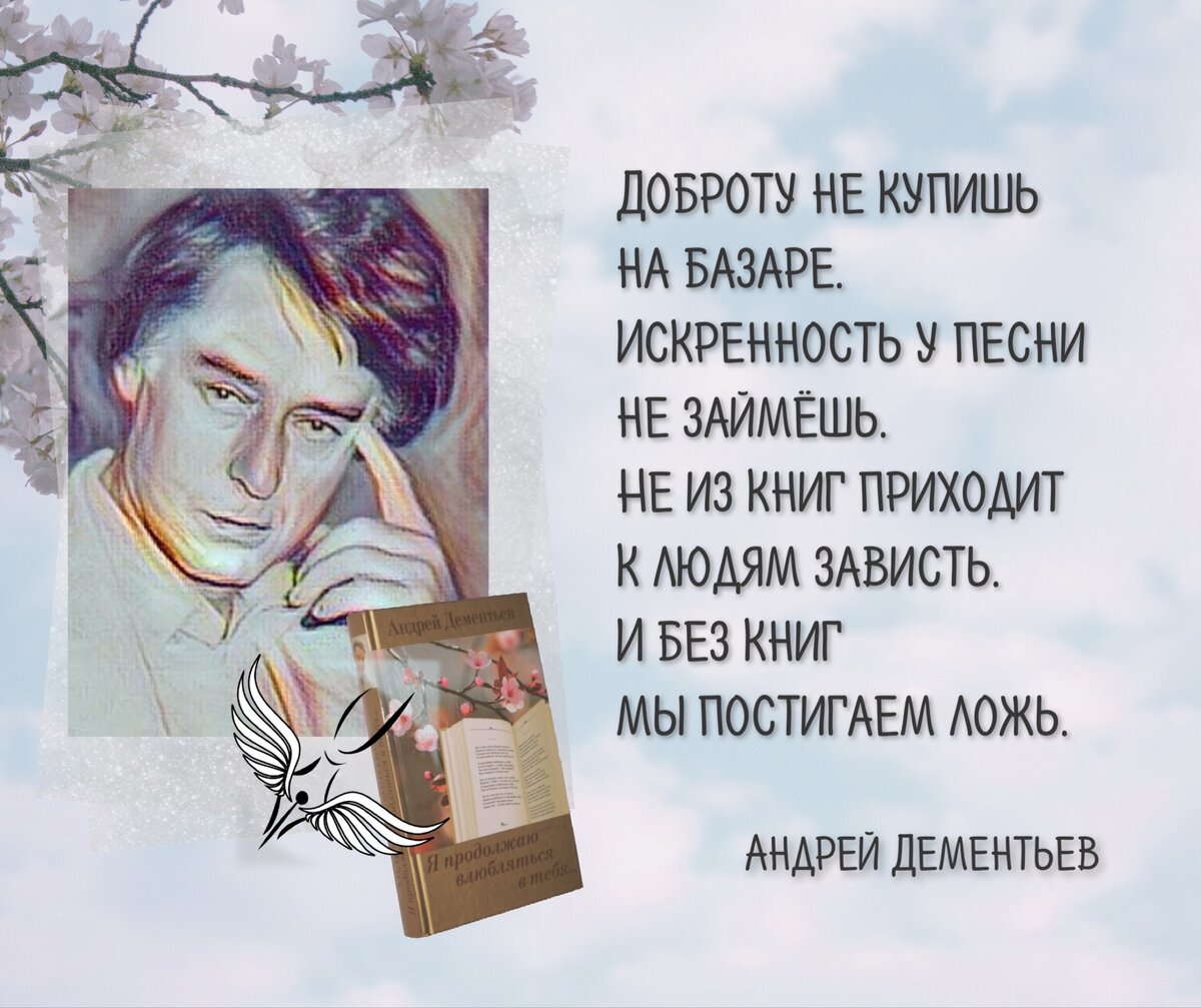 «Поэзия — это как протянутая рука. В какой-то тяжёлый момент протягиваешь человеку руку или подставляешь плечо. Вот это поэзия, когда она настоящая. Она необходима, чтобы людям было немножко легче, веселее, может быть, светлее, радостнее, чтобы не приходило отчаяние. Поэзия — её не заменишь». Разве можно сказать о сущности поэзии лучше, чем Андрей Дементьев?