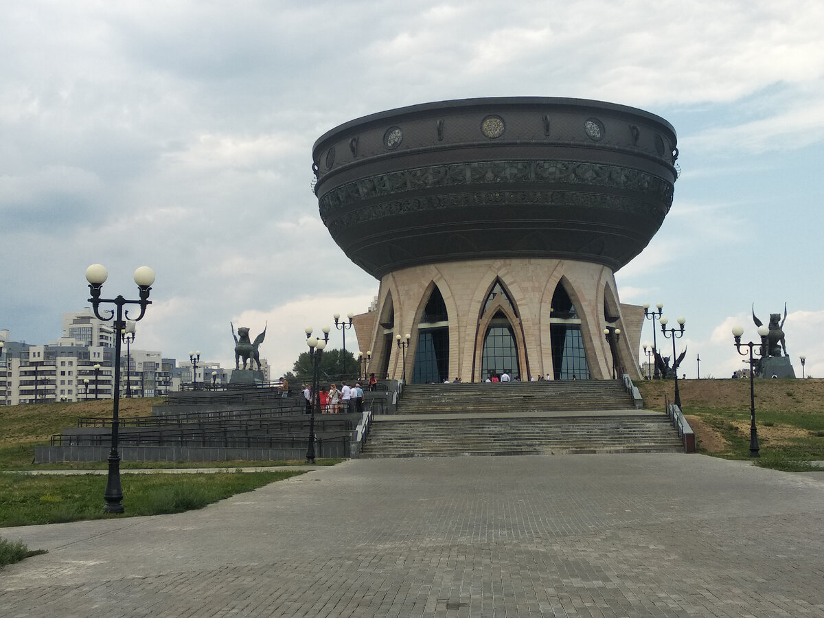 Казан или Чаша, очень нравится туристам, а я расскажу почему оно мне не нравится. Казань стала очень туристическим городом и городом в который постоянно переезжают люди из разных регионов. В Казани есть свои плюсы, как впрочем и минусы, но плюсы явно перевешивают, но сейчас не об этом. Думаю, кто хоть раз был в Казани уже узнали это место. Находится Чаша напротив Кремля, на другом берегу реки Казанки. Технически и по предназначению это ЗАГС, причем для регистрации браков. На крыше расположена площадка с которой открываются отличные виды города. Причем зимой тут устанавливают еще и центральную елку и делают ледяной городок. Весной же проводят Масленицу и сжигают чучело. Так что же тут плохово? А вот раньше до обновления города, тут находился большой шикарный пляж, на котором умещались практически все горожане. Возможно это просто ностальгия и я ворчу на новое. А поскольку не все любили ходить по песку, то на 9 мая на этот пляж можно было заехать на УАЗике и занять лучшее место для прос