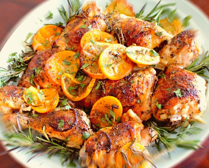 Для рецепта: 1) Курица - 1 кг (можно взять целую курочку и разделить на кусочки) 2) Апельсин - 1,5 шт (желательно выбирать сладкие с тонкой кожицей) 3) Чеснок - 1 головка 4) Сухое белое вино - 150 мл 5) Оливковое масло - 2-3 ст ложки 6) Тимьян - 5-6 веточек 7) Соль, чёрный перец Приятного аппетита!