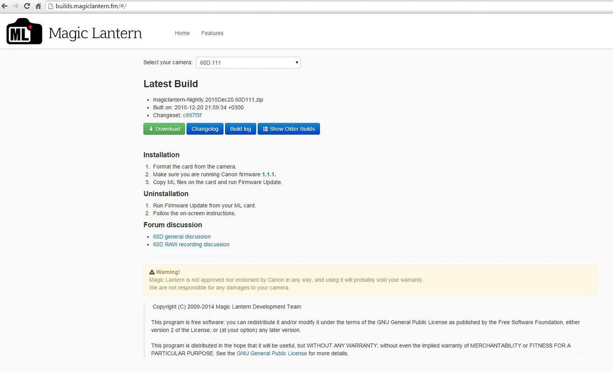 - Обновить прошивку своего фотоаппарата до актуальной для Magic Lantern