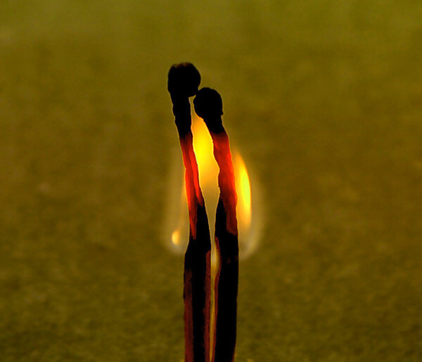 - Ладно, смотри. Сейчас я их подожгу. Если, сгорев, они останутся стоять прямо, то мы с тобой безразличны друг другу. Если разойдутся в разные стороны, то не любим друг друга. Ну, а если...