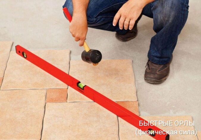 Если у Вас под рукой не оказывается резиновая киянка, тогда советуем использовать обычный молоток, но бить напрямую по плитке не нужно (расколите плитку), а нужно укладывать на нее деревяшку и через нее утрамбовывать плитку.