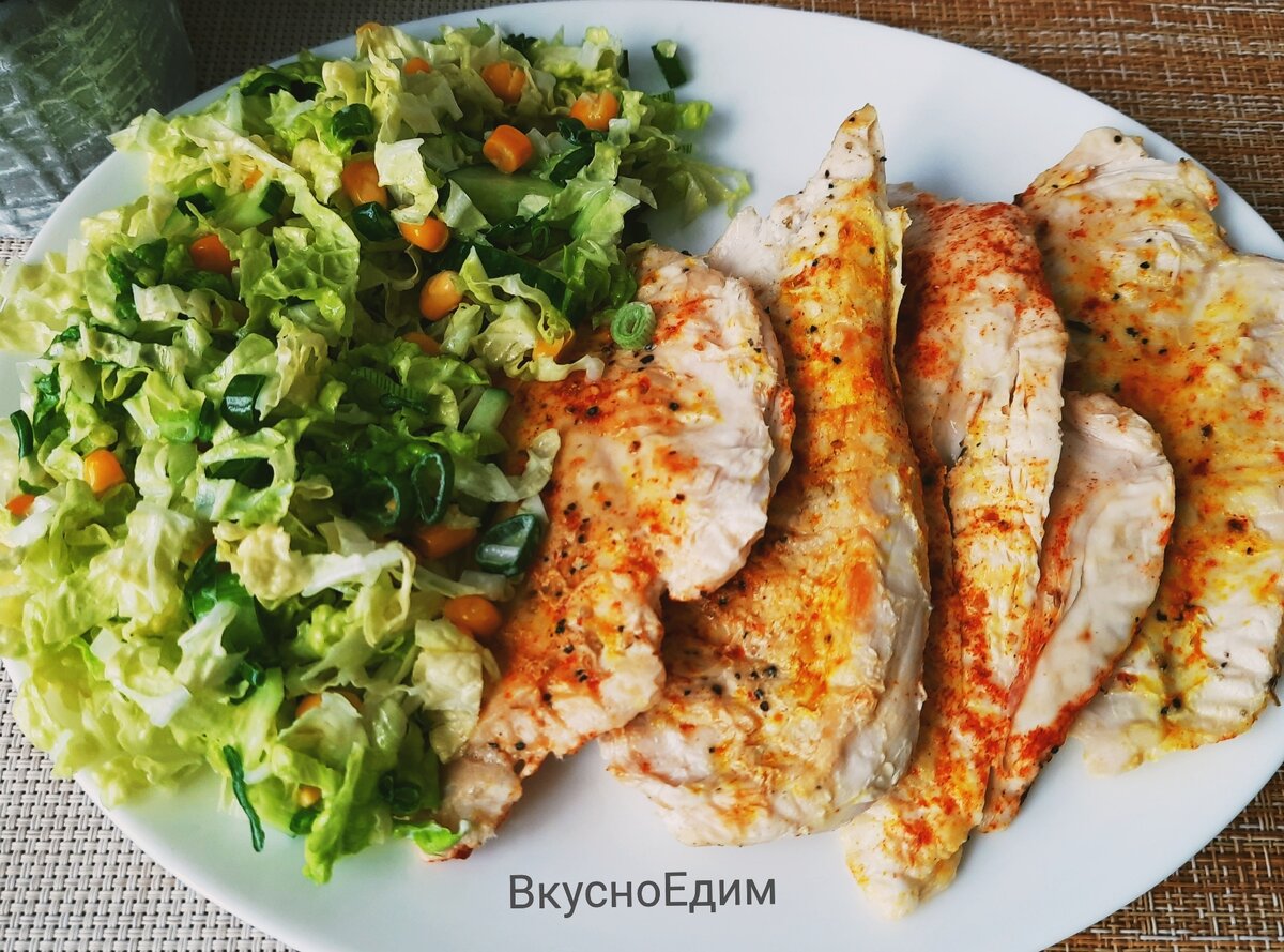 Рецепт приготовления куриных отбивных с приправами. Ингредиенты: куриная грудка - 1шт, паприка, смесь перцев, куркума, соль по вкусу, крахмал. Приготовление: Грудку нарезать на куски. Отбитьс двух сторон. Из пергаментной бумаги вырезать круг по форме вашей сковороды. Посыпатьна бумагу крахмал, затем приправы. Выложить кусок грудки и закрыть. Обжарить на сухой сковороде 5-7 мин с двух сторон.