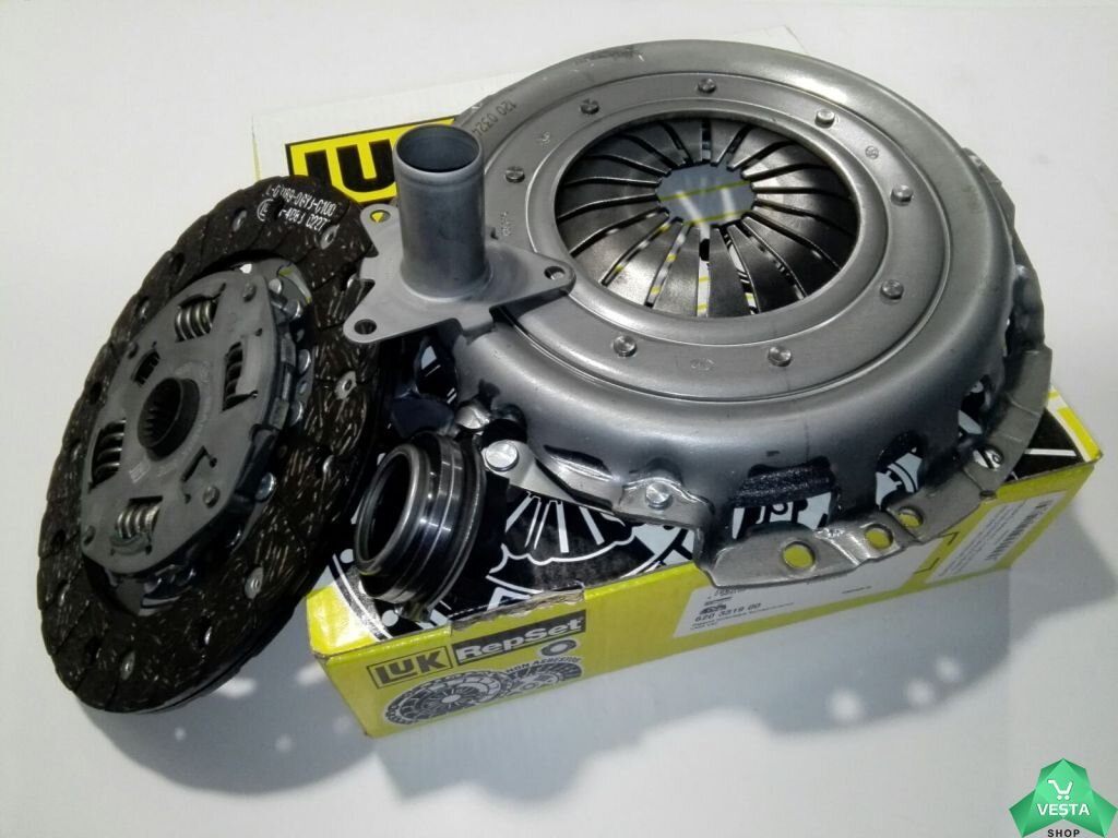 Если пришла пора менять сцепление, то, как минимум надо знать какое сцепление стоит на Ладе Веста. Независимо от типа коробки передач, механика или робот, в ней установлено однодисковое сцепление с центральной пружиной сухого типа. Есть различия лишь в приводе. У автомобилей с автоматической коробкой — привод электромеханический, а у механической — гидравлический. Сцепление для Весты состоит из корзины с установленным в ней нажимным диском, ведомого диска и диафрагменной нажимной пружины. Для гашения крутильных колебаний в ведомый диск встроен демпфер с пружинами. Именно эти пружины были причиной модернизации диска сцепления. Диафрагменная пружина вдавливается толкателем выжимного подшипника, являющимся частью рабочего цилиндра. Повышенный шум во время переключения сцепления говорит об износе выжимного подшипника. Его следует заменить. Но, если вы меняете диски сцепления, производитель рекомендует заменить выжимной подшипник независимо от степени его износа. В улучшенных дисках сцепле
