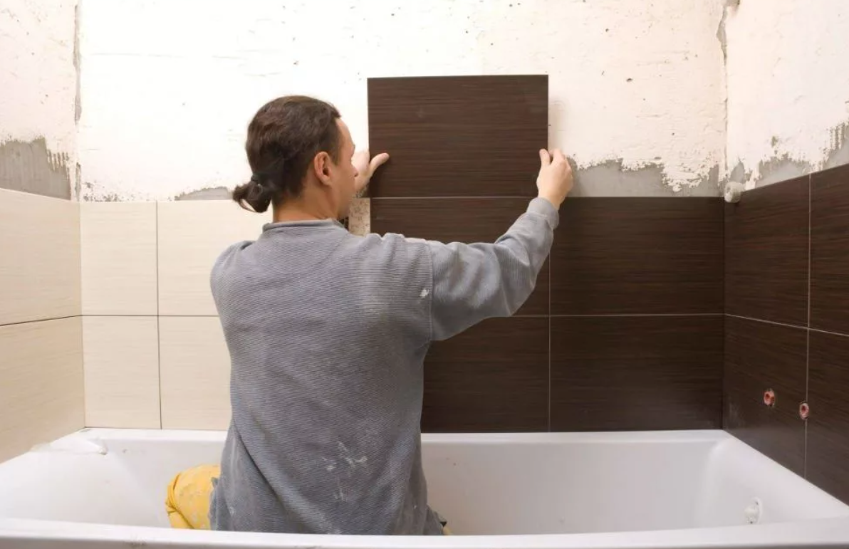 Итак, снимаем (проведем демонтаж) старое покрытие для пола, подготавливаем стены. Вам, для проведения таких действий, потребуется целый ряд инструментов: строительный перфоратор, молоток, зубило. Порой, это может отнять много времени, поскольку необходимо будет удалять остатки старой плитки, цемента или настенного клеевого состава. Но все эти действия придется сделать - чтобы не наносить лишний растворный слой (и чтобы новая плитка потом не «выпирала»). Теперь проведем замену изношенных труб на новые трубы. Вполне возможно, что тут Вам потребуется помощь профессионального сантехника (Это если Вы не обладаете всеми нужными навыками). После замены труб можно укладывать керамическую плитку. Далее, при помощи обыкновенного уровня, точно замеряем линию по всем нашим стенам. Линия замеряется по одной плитке. Затем от этой линии начинаем укладывать плитку. Раствор наносим обыкновенным зазубренным шпателем на плитку. Потом плитку прижимаем к стене слабо (чтобы после укладки сразу всего ряда