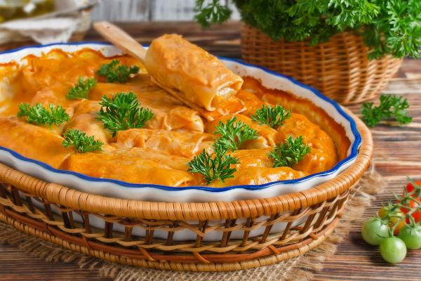 Голубцы – блюдо славянской кухни, представляющее собой мясной или овощной фарш с отваренным рисом (и/или гречневой крупой), завёрнутый в капустные или виноградные листья. Блюда, похожие на голубцы, широко распространены в Азербайджане, Армении, на Балканах, в Казахстане, Молдавии, Турции и в странах Средней Азии. Существует множество разновидностей с различными начинками. Если для современной русской кухни голубцы с грибами не очень привычны, то, например, в Закарпатье это традиционное блюдо, которое на сочельник готовят из квашеных листьев капусты, заворачивая в них начинку из риса и грибов. Считается, что блюдо с названием «голубцы» появилось сравнительно недавно – в XVIII-XIX веках – именно в тот период, когда на Россию большое влияние оказывала весьма модная по тем временам и задающая тон во многих кулинарных аспектах французская кухня, где подавались жареные на решётке тушки голубей. В России данное блюдо так и называли «голуби». Примерно в то же время стали подавать «фальшивых» г