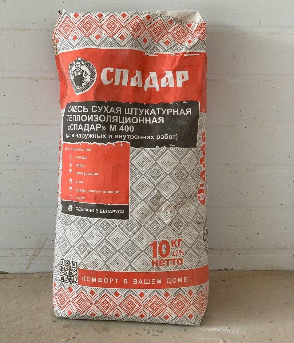 Как определить необходимое количество штукатурной смеси «Спадар», которое необходимо заказать, оплатить, и привезти на объект. Всё просто. Разъясняем по пунктам. Приведём пример. Необходимо оштукатурить штукатурной смесью «Спадар» фасад площадью 175м². Толщину слоя принимаем (условно) – 17,5мм. Расход смеси при толщине слоя 10мм – 3,8кг. на 1 м², это значит, что расход для нанесения смеси толщиной слоя 1мм потребуется, делаем простой расчёт 3,8кг. : 10мм. = 0,38кг/мм. Далее определяем расход смеси на 1м² при толщине слоя 17,5мм, для этого 0,38кг. х 17,5мм = 6,65кг. – потребуется для оштукатуривания 1м² толщиной слоя 17,5мм. Далее определяем количество смеси на всю площадь фасада, которая составляет 175м², для этого 6,65кг. х 175м² = 1163,75кг. смеси потребуется для оштукатуривания 175м² толщиной слоя 17,5мм. Далее 1163,75кг. : 10кг. = 116,375мешков штукатурной смеси потребуется для оштукатуривания 175м² фасада. Естественно 116,375 необходимо округлить до целого количества мешков, это