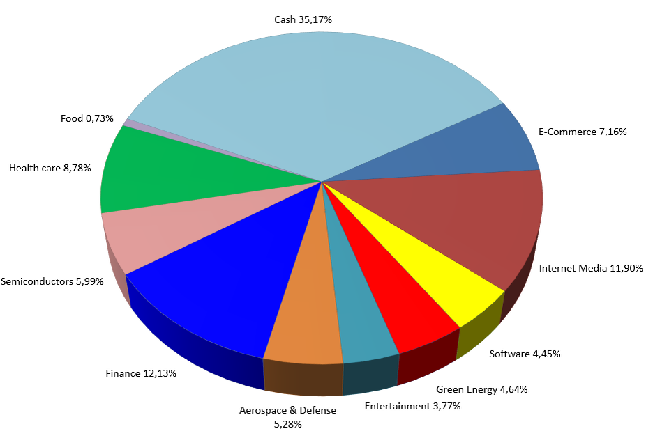 За прошедший месяц индекс Nasdaq Composite прибавил 2,83%, а S&P 500 вырос на 3,86%. Наш портфель SUVE CM вырос за прошедший месяц на 0,81%. Отставание от бенчмарка Nasdaq Composite связано с 35% долей кэша в портфеле.