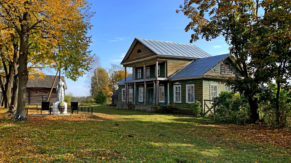 Тверская губерния в рамках недельного путешествия. Проезжая деревню Богатьково, с правой стороны дороги, как на картинке, нарисовался деревянный усадебный дом, уж очень типичный для мелкопоместного дворянства. Он стоит прямо на дороге, проехать мимо и не заметить невозможно. Имеется табличка – «Усадьба Ртищевых». Такой аккуратненький усадебный дом. Дом-то ещё молодцом смотрится: видимых серьёзных повреждений нет. Крыша не протекает. Все украшения – балкон, фронтон и колоны. Но, говорят, что была ещё незамысловатая лепнина. Остановился поснимать. Женщина у колонки с водой, видя, что мы заинтересовались усадьбой, спросила, нет ли у нас желания купить её, она на продаже. Один милион рублей. Нет, мы не готовы были к подобным приобретениям, но попросили открыть дом, посмотреть. Ну, и разговорились. Пока мы говорили, подкатил на велосипеде странный бомжеватого вида мужик, попросил сигарету и остался с нами. Вот что она поведала. Она краевед, мне везёт на собеседников в дороге. Усадьба с 1932