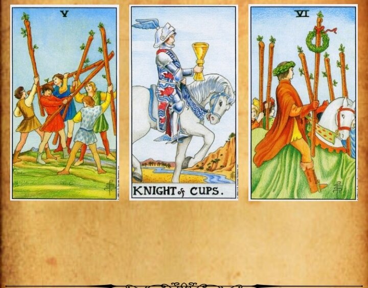 Утро ( 5 Жезлов): Будет не простым, вас ждут все возможные ссоры и разногласия с окружающими людьми. Могут быть серьезные проблемы на работе ,разборки с коллегами или вызов на ковер к руководителю. Возможны выяснения отношений с любимым человеком или конкуренция за любовь. Утро грозит вам серьезными неприятностями ,так что хотите мира готовьтесь к войне. Днём ( Рыцарь Кубков); Можно будет сделать не большую передышку. Пойти в ресторан или провести время в приятной компании. Вообщем делу время а потехи час, можно немного отдохнуть или развлечься. Вечером( 6 Жезлов); Ну а вечером с чувством выполненного долга вы можете вернуться домой как победитель. Конечно всю войну вы не выиграете но и в этой битве дня не проиграете. Все насущные дела будут сделаны а злободневные проблемы будут решены. Работа будет сделана. Награда не заставит себя долго ждать. Мавр сделал свое дело,Мавр может уходить.