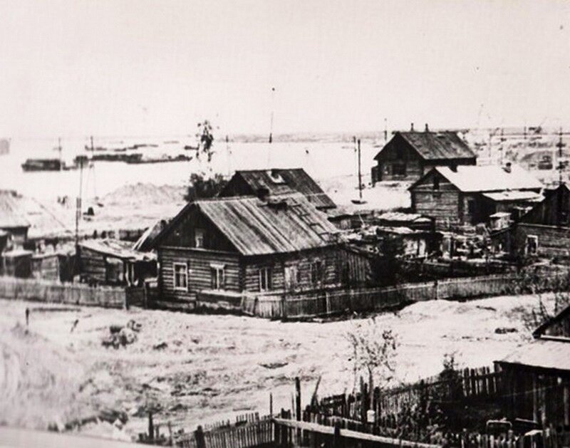 Нефтеюганск. Начало начал. Первые дома, среди которых отделения связи №1, на улице Гагарина. 1963 год.