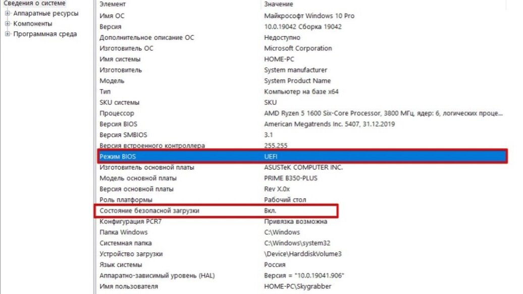- UEFI: жмем Win + R, вводим msinfo32, и смотрим на пункты Режим BIOS и Состояние безопасной загрузки: