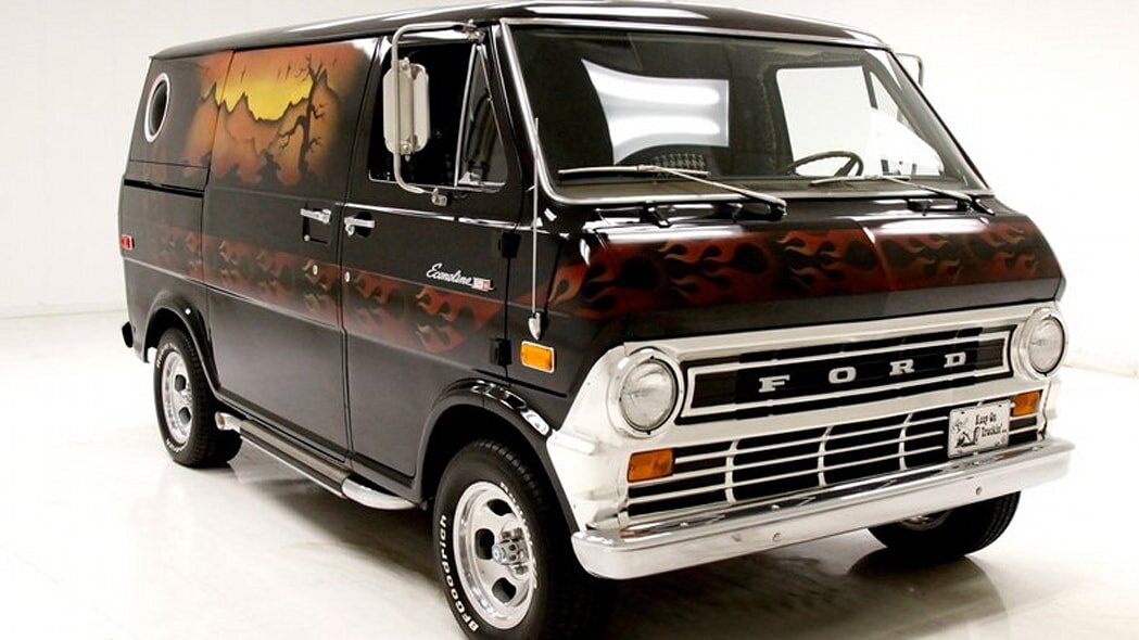 «Разработан для молодых людей, путешествующих по миру!». Подобных фургонов в 1974г. было огромное количество, но относительно немногие из них выжили. Благодаря Ford Econoline 1974 года, он продается прямо сейчас на eBay Motors, предлагаемом Classic Auto Mall. Новый Econoline был куплен в ноябре 1974 года у Миллера Маквея Форда из Государственного колледжа в Пенсильвании и продан за 6 791,02 доллара. В счете-продаже указано, что первоначальным владельцем был Ларри А. Браун, а его Econoline Custom 100 был оснащен 302-дюймовым V8, трехцилиндровым двигателем и мощным обогревателем. Более того, он был украшен регалиями 70-х, с 8-дорожечной стереосистемой, кассетами Cragar с прорезями, боковыми трубами и пузырьковыми иллюминаторами. Полоса огненного дизайна опоясывает внешность, и есть обязательная фреска. В данном случае триповая горная сцена с мертвым деревом на переднем плане.