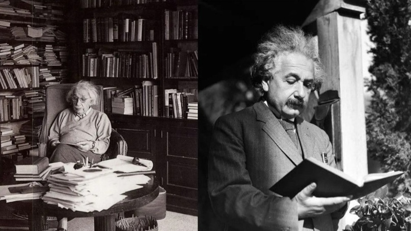 Эйнштейн был ревностным читателем и имел большую библиотеку, состоящую преимущественно из книг научного и философского характера. Однако среди его любимых книжных томов можно было встретить несколько совершенно неожиданных для физика произведений. 1."Анализы ощущений" Эрнста Маха. Сама по себе эта книга предстала для учёного, по его же собственным словам, неким толчком и стимулом к созданию теории относительности. Именно в ней австрийский философ и физик Мах впервые за очень долгое время прибегнул к критике ньютоновского восприятия космоса и вселенной, что было не свойственно учёным того времени. Именно революционные философские взгляды на привычную всем картину мира так сильно впечатлили юного Альберта. 2."Дон Кихот" Мигеля де Сервантеса. Леопольд Инфелд, занимающийся биографией гения, отмечал, что Эйнштейн « ...мог лежать в пижаме с книгой Сервантеса в руках. Он просто обожал её - это была его любимая литература для отдыха». 3. "Этика" Барухи Спиноза. В данном философском трактате Сп