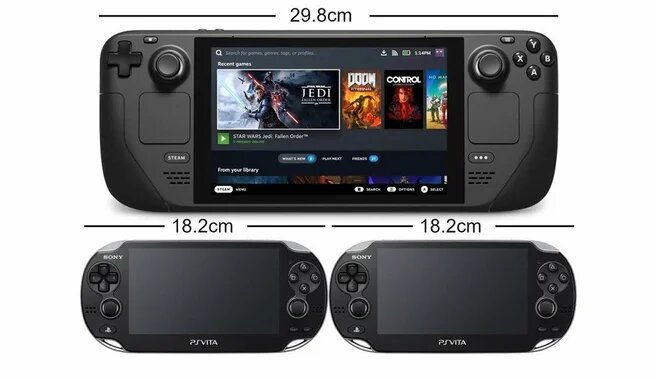На днях компания Valve, известная такими играми как Counter-Strike, Half-Life и сервису Steam, представила портативную игровую консоль Steam Deck. Основе Steam Deck лежит 7-нм гибридный процессор AMD Van Gogh. Он основан на архитектуре Zen 2 и имеет четыре ядра с поддержкой многопоточности (SMT). Тактовые частоты меняются от 2,4 до 3,5 ГГц в зависимости от нагрузки. Может показаться, что устройство достаточно маленькое, однако это не так. размеры — 298 на 117 на 49 мм , а примерный вес 669 грамм. Графический блок основан на архитектуре RDNA 2 и содержит 8 Compute Units (512 потоковых процессоров), работающих на частоте от 1,0 до 1,6 ГГц. По приблизительным оценкам вычислительная мощность iGPU составляет 1,6 Тфлопс. У Steam Deck будет три модификации в зависимости от стоимости. Во все модификациях различия будут только в памяти. Бюджетная версия: 64 ГБ памяти eMMC,Средний вариант: 256 ГБ памяти NVMe SSD и последняя: 512 ГБ памяти NVMe SSD. Объём оперативной памяти Steam Deck соста