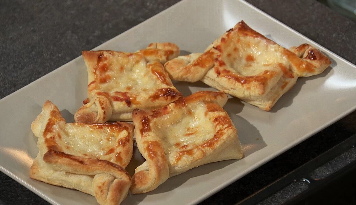 Очень простые и аппетитные мини-хачапури из слоеного теста с сыром!