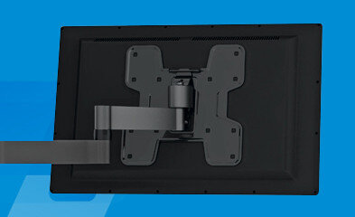 - Настенные поворотные кронштейны могут разворачиваться на 180 градусов. Это дает возможность менять угол обзора, что актуально для помещений со сложной геометрией, квартир с открытой планировкой. Регулировка происходит благодаря держателю с поворачивающим механизмом.