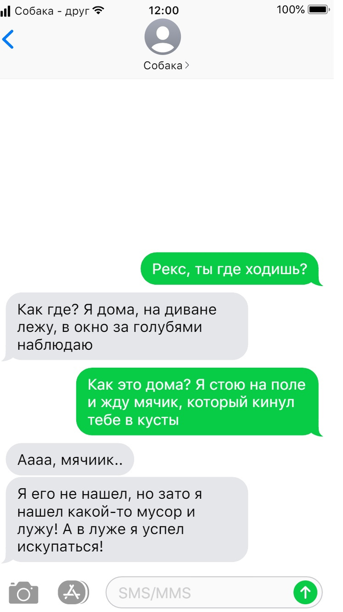 Некоторые владельцы собак просто мечтают, чтобы их домашний питомец однажды заговорил. К сожалению, или к счастью, такого в ближайшем будущем точно не будет, собаки не смогут так хорошо разговаривать с нами. Но если отбросить этот мир и пофантазировать? Собака была бы отличным собеседником, но иногда могли возникнуть такие смешные ситуации, которые находятся ниже, что думаешь: "А нужно ли собакам уметь разговаривать?". Давайте окунемся в мир переписок со своими домашними питомцами. На этом подборка переписок закончена. Надеюсь в этих переписках вы увидели жизненные ситуации и ваше настроение значительно улучшилось! Спасибо за прочтение статьи. Буду благодарен, если вы поддержите мой материал кнопкой: "Нравится" и подпишитесь на мой канал, тем самым мотивируя меня писать всё больше материала про собак.