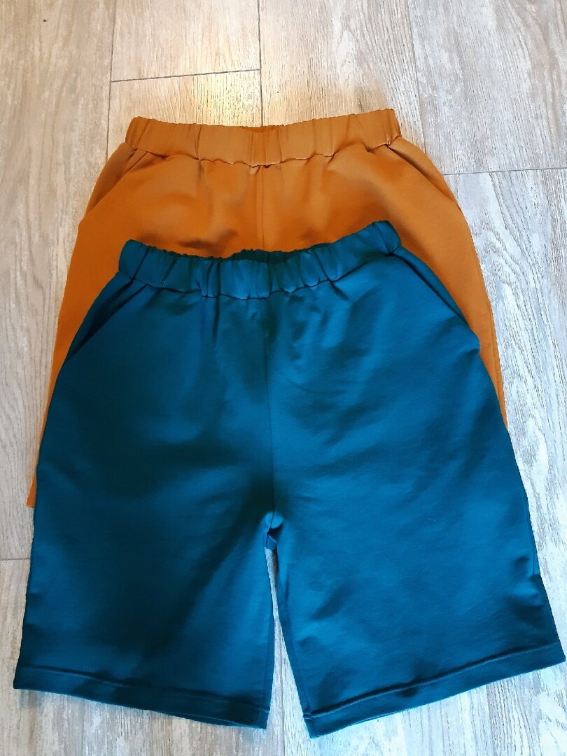 Расскажу, как сшила шорты крестнику. Выкройку я взяла у Элины Патыковой. Если понравится, могу дать ссылку на неё. Выкройка рассчитана на футер 2 нитку, но думаю можно сшить из 3 нитки. Резинку использовала фирмы Prym. Она жесткая, при носке шорт она не скручивается пополам на поясе. Уже проверено. Но она дороже, метр около 240р. На одни шорты у меня ушло 66см (но это уже надо мерить на Вашем ребенке). По выкройке расчет был на 70 см. Для начала нужно выкроить детали, передняя половина шорт 2 детали, задняя половинка 2 детали, мешковина кармана 2 детали, карман 2 детали (все эти детали нужно выкроить в зеркальном отражении). И еще одна деталь пояса со сгибом. Возьмите мешковину, которая меньше, и сложите лицевой сторой к передней половинке шорт, сколите иголочками и стачайте на оверлоке вдоль входа в карман. Застрочите припуски на мешковину кармана. Использую специальную лапку. О ней я уже рассказывала в прошлой статье. Лапка регулируется винтиком сбоку, можно сделать отстрочку как 0,1