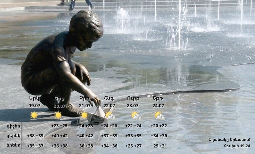 Օդի ջերմաստիճանը հուլիսի 19-ի և 20-ի ցերեկն աստիճանաբար կբարձրանա 4-5 աստիճանով։