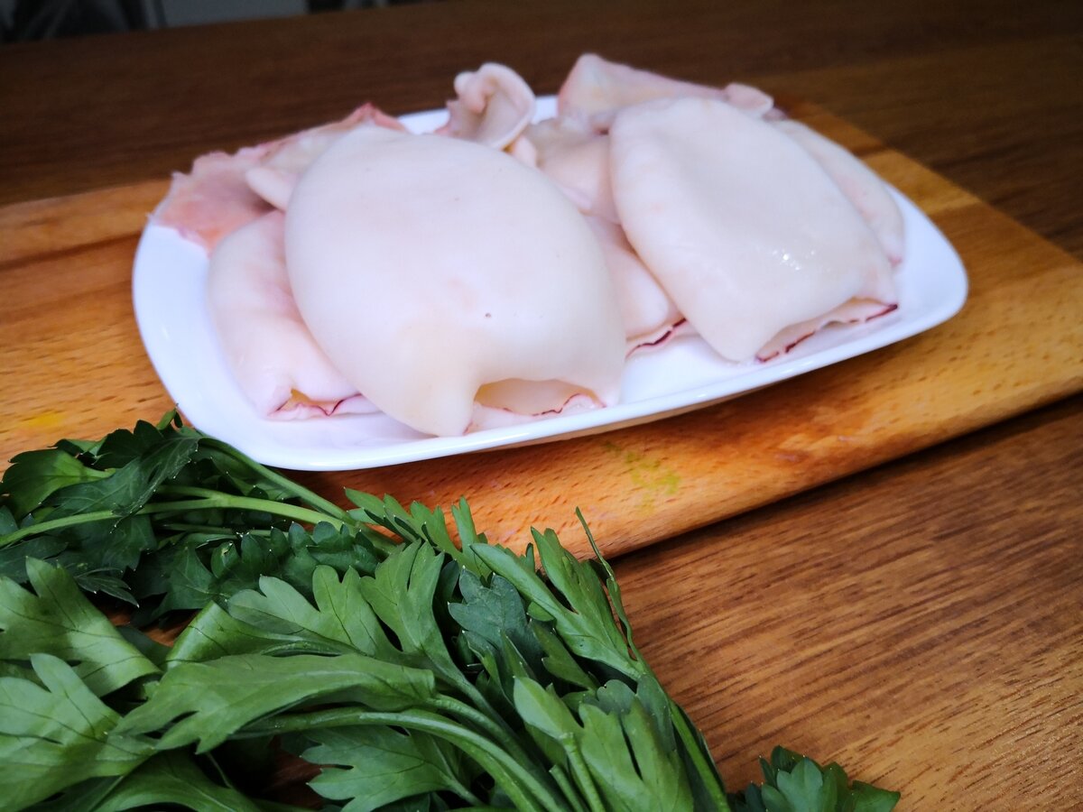 Кальмары - это очень вкусный и полезный продукт. Они являются хорошим источником белка и минералов, богаты витаминами В6, РР. По количеству полезных веществ кальмары превосходят рыбные и мясные блюда. Этот продукт обладает очень приятным вкусом и превосходно сочетается с различными ингредиентами. Очень популярны салаты с кальмарами, но чтобы салат получился вкусным и нежным, нужно уметь правильно их приготовить. Если всё сделать по инструкции, вкус получится великолепным, но если кальмары переварить, они будут "резиновыми". Разберёмся как же правильно варить кальмары. Подготовка к варке Тушки кальмара следует правильно разморозить, чтобы не испортить качество будущего блюда. Для этого поместим их в холодную воду , пока они полностью не оттают. Затем необходимо очистить кальмары. В первую очередь очищаем тушку внутри от хитиновой пластинки (позвоночника) и внутренностей, а также снимаем верхнюю плёнку. Чтобы плёнка легко отходила, нужно тушку либо залить кипятком, либо погрузить в кипя