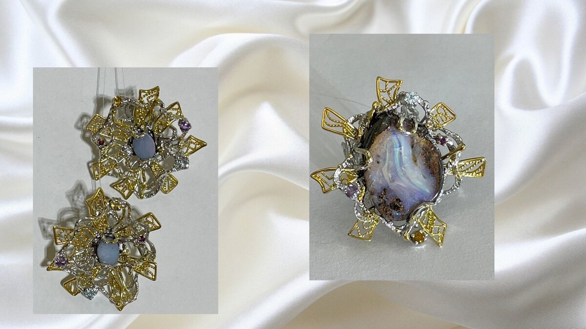 Драгоценные камни — минералы, которые обладают красивым внешним видом ,редким рисунком или цветом - как следствие, дороги и шикарны. Их широко используют для производства ювелирных изделий или собирают в коллекциях. Кольцо и серьги "Болдер - ОПАЛ" Авторская работа заключила натуральный Болдер опал в фантазию из серебра. Цена серег 23830, цена кольца 26900 Болдер опал – это камень, который оказывает мощную поддержку владельцу в его стремлении реализовывать и воплощать в жизнь свой потенциал, способности и таланты. Это также камень, который гармонично объединяет в человеке высокие энергии и обычную, земную жизнь. Кольцо и серьги "Опал болдер" ЦЕНА КОЛЬЦА 26 440, СЕРЕГ 31 910 Кольцо и серьги "КВАРЦ ДЕНДРО" Цена кольца 26380, серег 31050 Полупрозрачный МИНЕРАЛ, скрытокристаллическая тонковолокнистая разновидность кварца. Микроскопические волокна халцедона образуют параллельные срастания, индивидуальные волокна группируются в пучки толщиной от нескольких микрон. Кольцо и серьги "ОПАЛ