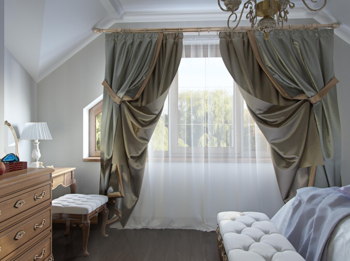 Использование драпировок в стиле тафты в комнате с современной мебелью