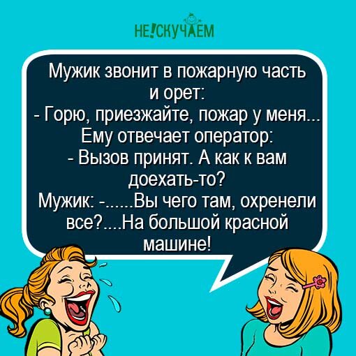 * * * * * * — Как жизнь? — Да как тебе сказать... Как на корабле: горизонты широкие, перспективы в тумане, деваться некуда, тошнит, но плывешь. * * * * * * Антипрививочник - звучит гордо. Но недолго. * * * * * * Прапорщик на занятиях: - Вот идёте вы в чистом поле, и вдруг из-за угла неожиданно выезжает танк. Ваши действия? * * * * * * Продаются туфли на платформе, платформа 5 путь 6 вокзал пригородный. * * * * * * Только в России дороги зимой ровнее, чем летом. * * * * * * - Девчонки, скажите, что делать, если парень охладел? - Хоронить. * * * * * * Соседка обращается к соседке: - Одолжи скалку. - Не могу, сама своего жду... * * * * * * Почему надпись на дороге "Коля любит Галю" видна второй год, а разметка, нанесенная специалистами-дорожниками стерлась за три месяца? * * * * * * Да, будущее сейчас не то что раньше. * * * * * * Спасибо, что читаете. Если вам нравится подпишитесь, ставьте лайки, комментируйте. Хорошего вам дня и отличного настроения! Другие публикации канала.