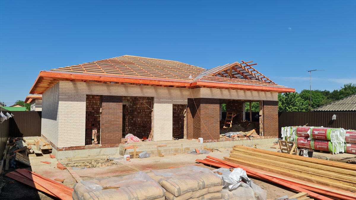 Проект одноэтажного дома в процессе строительства