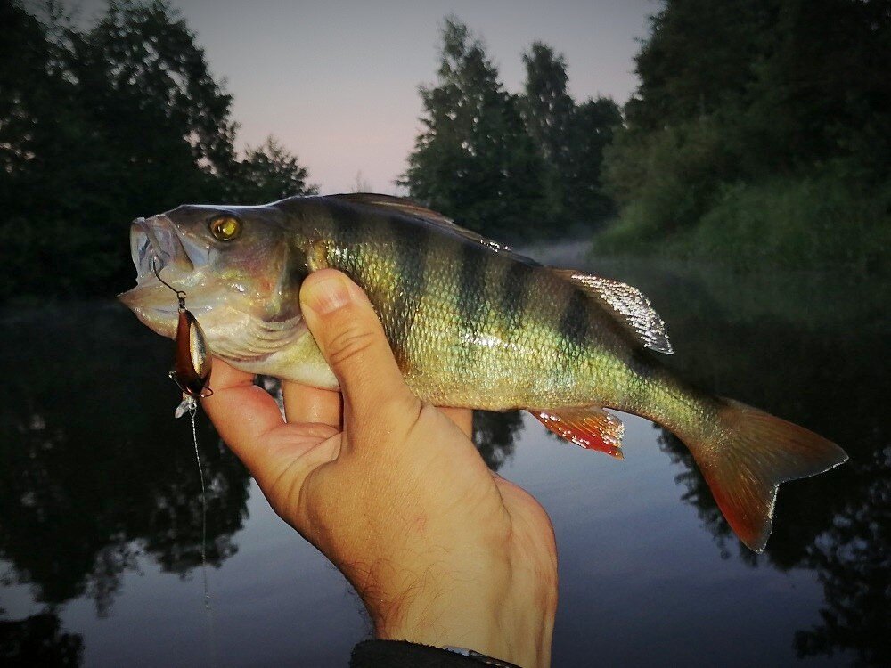 Когда месяц сидишь на одной реке, и львиную долю трофеев составляет вертушечный окунь, хочется внести в почти ежедневные рыбалки какую-то живинку: новый участок речки с пристрастием пробить или поэкспериментировать с приманками… Сначала копаешься «внутри класса», играешь с цветом, размером, формой вертушек, но довольно скоро понимаешь: качественные вертушки размера «0» работают примерно одинаково, и результат гораздо больше зависит от количества и активности окуня на выбранном участке реки, чем от формы или цвета лепестка вертушки. Так 3-граммовый Myran Agat, например, работает примерно одинаково в трех основных вариантах лепестка: медь, золото и серебро. Пробуешь воблеры. Если окунь совсем уж мелкий, можно ловить и на «микробов» - однокрючковые воблерки до 3 см длиной. Но осложнившиеся условия (низкая вода и высокая трава, см. фото3) все же не предполагают совсем уж ультралайтовых снастей, а на лайте «микроб» как надо не полетит, так что выбираем воблер покрупнее – Smith Camion SR или