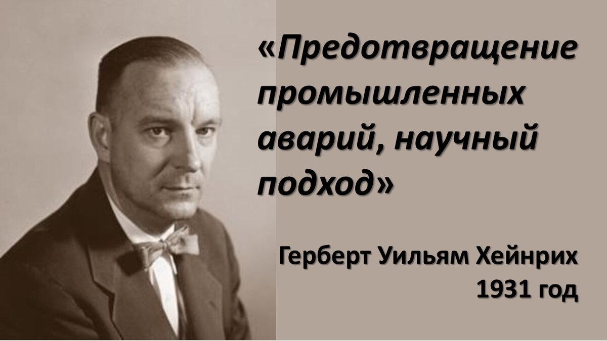 Когда случается происшествие, в первую очередь ищется "виноватый". А точнее, кто последний был на месте происшествия – того и назначаем виновным – это удобно. Или есть еще одно очень хорошее объяснение – кто-то с чем-то не справился. Например, водитель с управлением транспортным средством, или пилот с управлением самолетом, или оператор со станком. А так ли это на самом деле и есть ли научное обоснование человеческого фактора? С развитием механизации как производств, так и средств перемещения (по дорогам, воздуху и прочее), вопросы безопасности начинали беспокоить все больше и больше. Человеческая жизнь всегда была высшей ценностью, но и об имущественных потерях нельзя забывать. Дороже негативных последствий для предприятий только страховые страховые выплаты страховщиков. Так еще в начале 20 века помощник суперинтенданта инженерно-инспекционного отдела Страховой компании Travelers Герберт Уильям Хейнрих заинтересовался можно ли просчитать безопасность и предотвратить возникновение прои