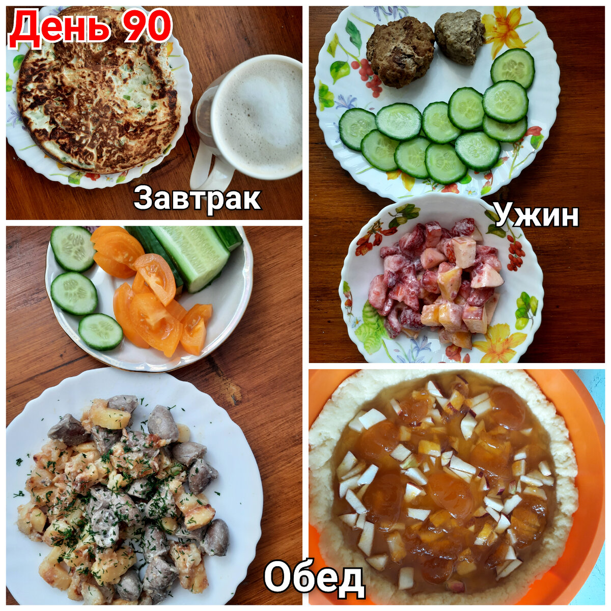 #Завтрак – кофе со сливками и сахзамом. #Сырнаялепешка с зеленым луком. 1 яйцо+3ст.л. сметаны+2ст.л. муки+соль, мешаем. Тру 50г сыра, режу зеленый лук. На сковороду выливаю половину теста, жду, пока оно схватится. Затем переворачиваю в сковородке эту лепешку-блин, выкладываю на схватившуюся часть лепешки начинку в виде сыра и лука, заливаю второй половиной теста. Накрываю крышкой, жду, пока низ схватится и верх начнет тоже становиться густым, и еще раз переворачиваю. #Обед – жареная #картошка с луком, огурец, помидор, куриные #сердечки со сметаной. У сердечек срезаю верхнюю часть с жиром, убираю пленки, если есть. Тушу на сковородке с небольшим количеством воды минут 10, затем добавляю пару ложек сметаны, соль, перец, мешаю и еще минут 10 потушить. Они быстро готовятся. И мне нравится, какие они по текстуре – упругие. #Десерт – #песочный #пирог с вареньем. Мука 300г, масло сливочное 200г (растапливаю в микроволновке не до конца), размешиваю в крошку (смотрите фото в карусели). В отдель