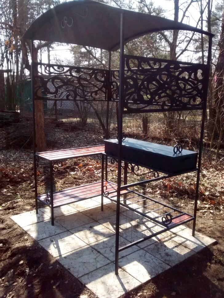 Мангал с крышей HOME-26 с узорами 🎁При покупке мангала ДАРИМ ПОДАРКИ🎁 ОПЛАТА при Получении👍 ✔Доставка по Москве и МО уже на 2 день ✔Есть Самовывоз Толщина жаровни: 3 мм. Материал столика: натуральная древесина сосны с атмосферостойким покрытием. Каркас из профильной трубы 20 x 20 мм. Покраска: жаростойкая матовая эмаль. Конструкция разбирается на крышу, арки, стойки, основание, жаровню, ----------------------------------- Общие габариты: 1600 x 1130 x 2430 мм. Габариты жаровни: 1000 x 350 x 170 мм. Габариты печи: 370 х 530 х 435 мм. Вес 72 кг ----------------------------------- Так же можно заказать толщину жаровни и аксессуары Жаровня сталь 5 мм + Жаровня 5 мм с зольниками+ Комплект из пяти решеток-гриль+ Крышка-барбекю+ Крышка-барбекю + 5 решеток-гриль+ -------------------------------------------- Строгий многофункциональный и практичный мангал с крышей и метровой широкой толстостенной жаровней. Крыша представляет собой лист стали, толщиной 1 мм, которая всег
