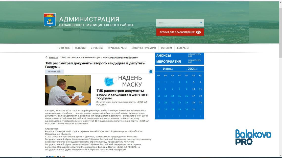 Пресс-служба балаковской администрации удалила новости о кандидатах в депутаты Госдумы