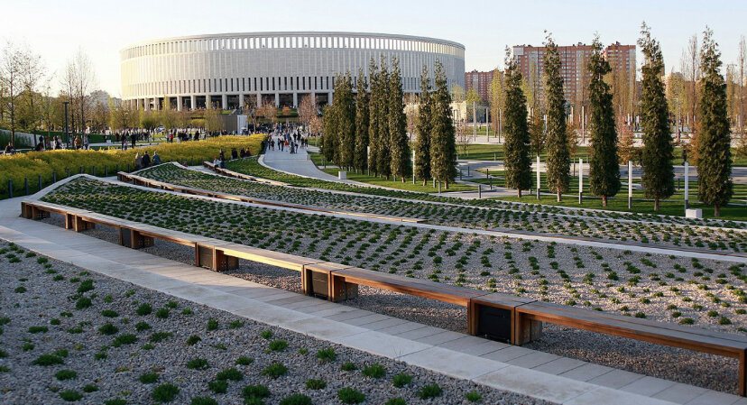 История парка История парка «Краснодар» началась с одноименного стадиона. Его построили на деньги основателя сети магазинов «Магнит» Сергея Галицкого и открыли осенью 2016 года. На стадионе бизнесмен решил не останавливаться. Рядом с ним разбили большой парк. Официальное название – «Краснодар», но чаще посетители используют народное – парк Галицкого. Парк открылся в сентябре 2017 года, его расширение продолжается до сих пор. Разработкой проекта занималось немецкое архитектурное бюро GMP International. Площадь парка 22,7 га. На его территории высажено более 2,5 тыс. деревьев, есть множество локаций с водой, несколько точек общепита, детских площадок и других активностей. Плюсы парка 3.Объекты парка и их направленность – в парке есть активности для всех возрастных категорий. В первую очередь, для детей. Подробно рассказывать не буду. Приходите в парк и знакомьтесь с ними своими глазами. Радует, что предусмотрена разнонаправленность этих объектов – пофотографироваться, позалипать, подум