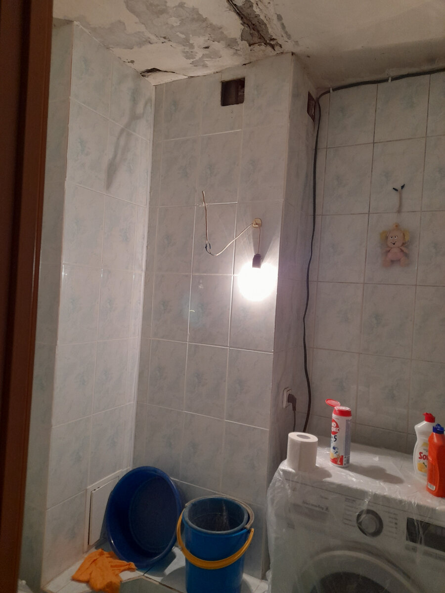 Данный совмещенный санузел находится в 2-х комн. квартире панельного 9-ти этажного дома. Изначально планировка от застройщика была - это отдельная небольшая ванная комната и туалет, но при последнем ремонте около 14 лет назад, хозяйка квартиры решила их объединить. Как видите на фото за эти годы все изрядно загрязнилось и обсыпалось, к тому же мастера, которые выполняли отделку похоже не были профессионалами. В этой "двушке" мы сделали полный ремонт всех комнат, а вот санузел заказчица попросила просто обновить с минимальными вложениями. Главное нужно было установить отдельную розетку на стиральную машинку. Именно с этого и начали, от нового автомата прокинули кабель через коридор по потолку. В углу пришлось снять несколько плиток и сделать штробу для укладки провода. Затем удалили старую расшивку и уголок в ванной Да, когда начали отодвигать стиральную машинку, то обнаружили, что шланги (сливной и подводка воды) очень короткие и старые (заменили на новые). Подход к кранам видно на фо