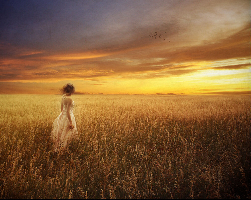 Встала, оделась, розовым шарфом подпоясалась и в степь вышла. Стояла вот сейчас и смотрела туда, где солнце ночевать садится. А потом – и пошла-а-а-а туда же, к солнцу. Прямо по лоскутному степному одеялу, не выбирая дороги.