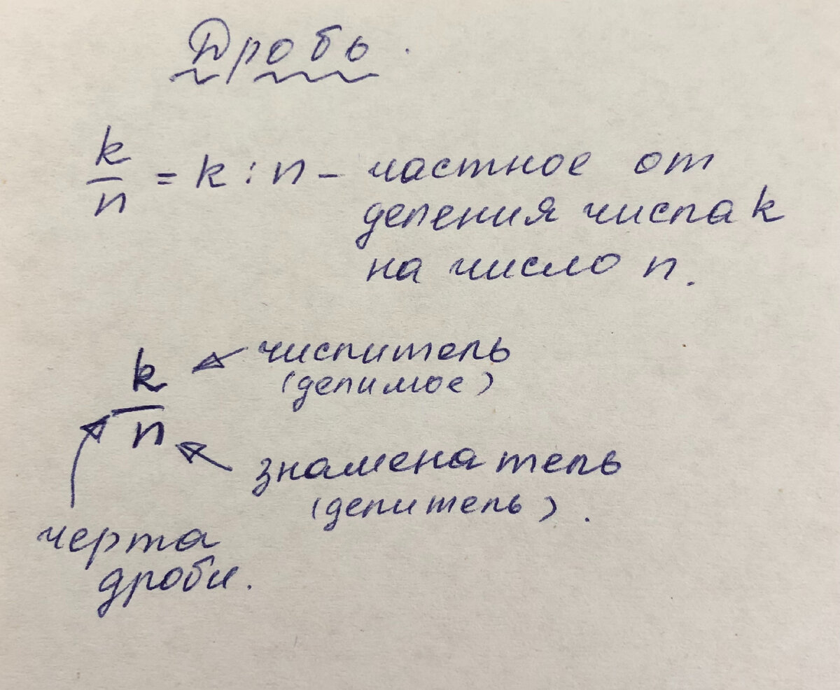 k - в дроби делимое записывается в верхней части и называется числитель;