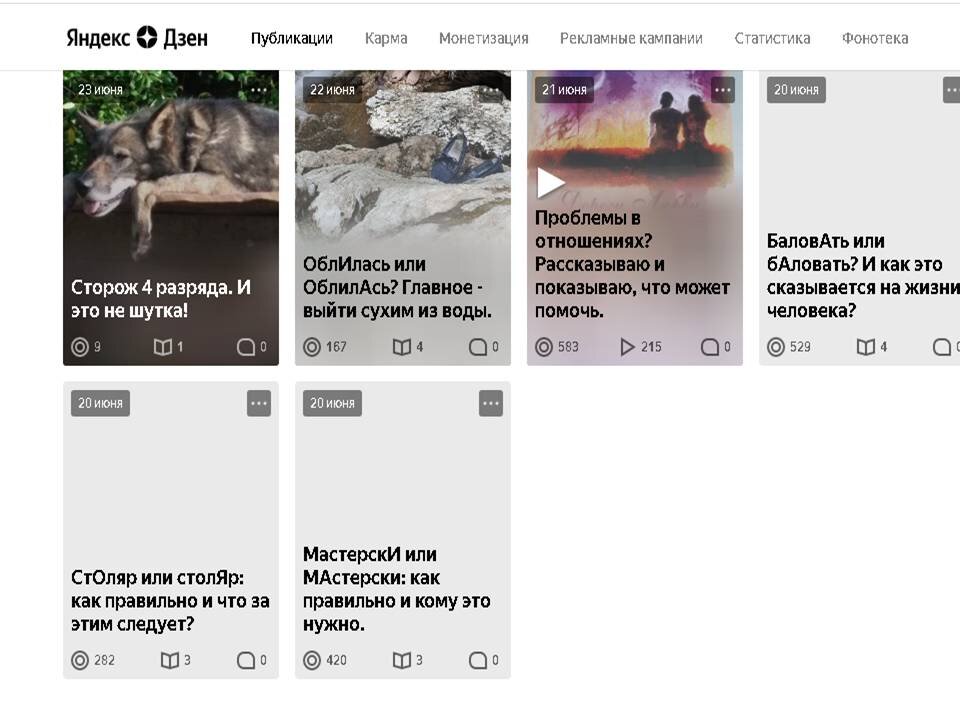 Прошел ровно месяц, как я стала размещать свое творчество на данном ресурсе. Как пришла идея, я обязательно расскажу, но чуть позже. Как понимаю, здесь есть традиция делиться своими успехами на Дзене. Я тоже не останусь в стороне и поделюсь результатами и своими наблюдениями. Первая публикация появилась 20 июня. В те дни очень яркими оставались впечатления после сдачи экзаменов ЕГЭ у сына, особенно по русскому языку, поэтому хотелось это выплеснуть и поделиться. Я выпустила сразу же в один вечер сразу три статьи. Они были без фото, но так как для запуска требовалось не менее трех статей, я быстренько их написала и отправила. Проверка заняла почти сутки, я даже начала расстраиваться, но все прошло, и я начала с воодушевлением вести блог и дальше. Следующей моей публикацией стало видео о метафорических картах. Здесь я думала о том, как бы так дать название статьи, чтобы его опубликовали, чтобы видео не попало в запрещенный контент со словом "метафорические карты", как азартные игры - мн