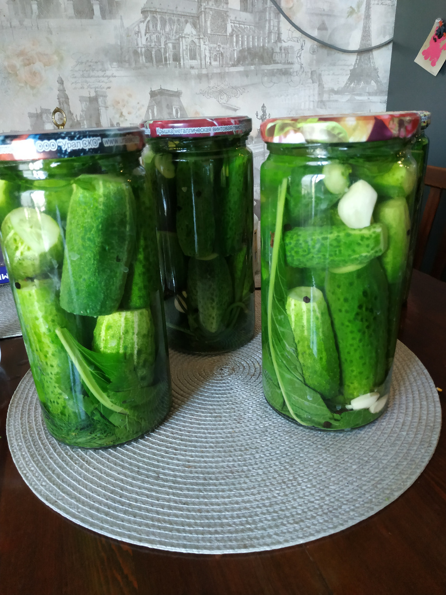 Маринованные сладкие огуречки. Проверенный и зарекомендовавший себя рецепт. Всех приветствую и спешу поделиться с вами, своими проверенным рецептом. Сладкие, хрустящие огурчики,что может быть лучше. Обязательно попробуйте приготовить сие чудо. Я вас заверяю, справиться даже новичок. И так приступим: что же нам понадобится для этого рецепта. Расчёт сделан 1 литр Огурцы-500гр Лист хрена-1шт Лист малины-2шт Лист вишни-2шт Лист смороды-2шт Зонтик укропа-1шт Гвоздика-1или 2 шт Перец горошком- 3-4 шт Чеснок -3,4 дольки Сахар -200гр Соль-1ст ложка с горкой Уксусная кислота-1чайная Огурцы конечно для закрутки, лучше всего брать проверенные, желательно со своего огорода. Если покупаете на рынке, смотрите, чтоб они были плотные,не в коем случае не мягкие. Огурцы нам надо замочить в ледяной воде на 2-3 часа. Если не уверены в огурцах, можно и на 5 часов, но воду надо менять раза 2 не меньше, она должна быть всегда ледяной. Зелень тщательно моем под проточной водой. Чеснок чистим, разбиваем