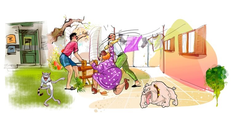 - Мам, мам, там опять эта собака гуляет без ошейника и без хозяина, она опять ведь меня укусит. - Опять, мы же с ними всё обговорили – удивилась Лена. - Сейчас, доча, я схожу и поговорю с ними, чтоб убрал собаку. Она собралась, и выбежала из дома, добежала до калитки соседей вдруг послышался лай и ей навстречу выбежал огромный Алабай. - Эй соседи, тут ваша собачка опять по улице бегает и пугает моего ребёнка – но никто не ответил – опять что ли она из ошейника вылезла. Собачий лай усилился, и собака начала рычать, тогда Лена вернулась домой. - Слушай Анют, видимо пока не получится погулять, там этих соседей нет. Вечер следующего дня. - Мам смотри, соседи приехали. - Вижу Анют, я пошла поговорю с ними, а ты сиди здесь и на улицу не выходи. - Добрый Сергей Анатольевич, у вас собака опять выбралась из ошейника и выбежала на дорогу и напугала моего ребёнка. - Лена, ты глупостей не говори, Мухтар сидит в своей будке и некуда не выходит, вон посмотрите – тогда она достала телефон и показала