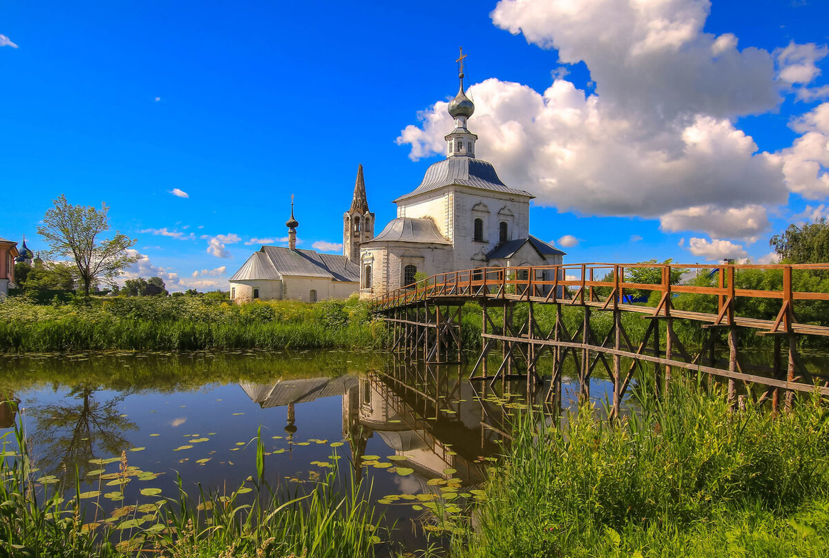 Суздаль - чудесный старинный город с уютными улочками, звуки которых пронизаны щебетанием птиц, шелестом листьев и тихим течением вьющейся, как кудри волос, прекрасной реки Каменки. Здесь повсюду цветут ароматные цветы и устилаются деревья дикой вишни. Тихий и неспешный город со сказочными домами и церквями, в котором наверное хотелось бы поселиться в старости. И только шумный поток туристов придает ему ненавязчивый оживленный ритм. Все здесь окутано какой-то необыкновенной магией волшебства. Кажется будто пёстрая печка из какой-нибудь кофейни вот-вот заговорит с тобой и предложит отведать свежих пирожков с самыми замысловатыми начинками, будто над небом вдруг из под облаков покажутся гуси-лебеди и пролетят над жёлтыми полями с братцем Иванушкой, а старик, неподалёку забрасывающий удочку в речку, точно поймает золотую рыбку и воплотит в реальность мечты своей любимой старухи. Всё здесь живое и дивное. Это город, в котором стоит побывать! А у вас есть город, к которому вы испытываете ст