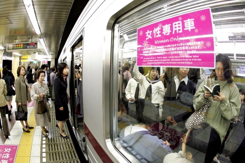 Женские вагоны метро в Японии - обычное дело. В таких вагонах мужчинам нельзя ездить только в час пик, когда все вагоны переполнены людьми, но и в остальное время они не сильно стремятся там оказаться.