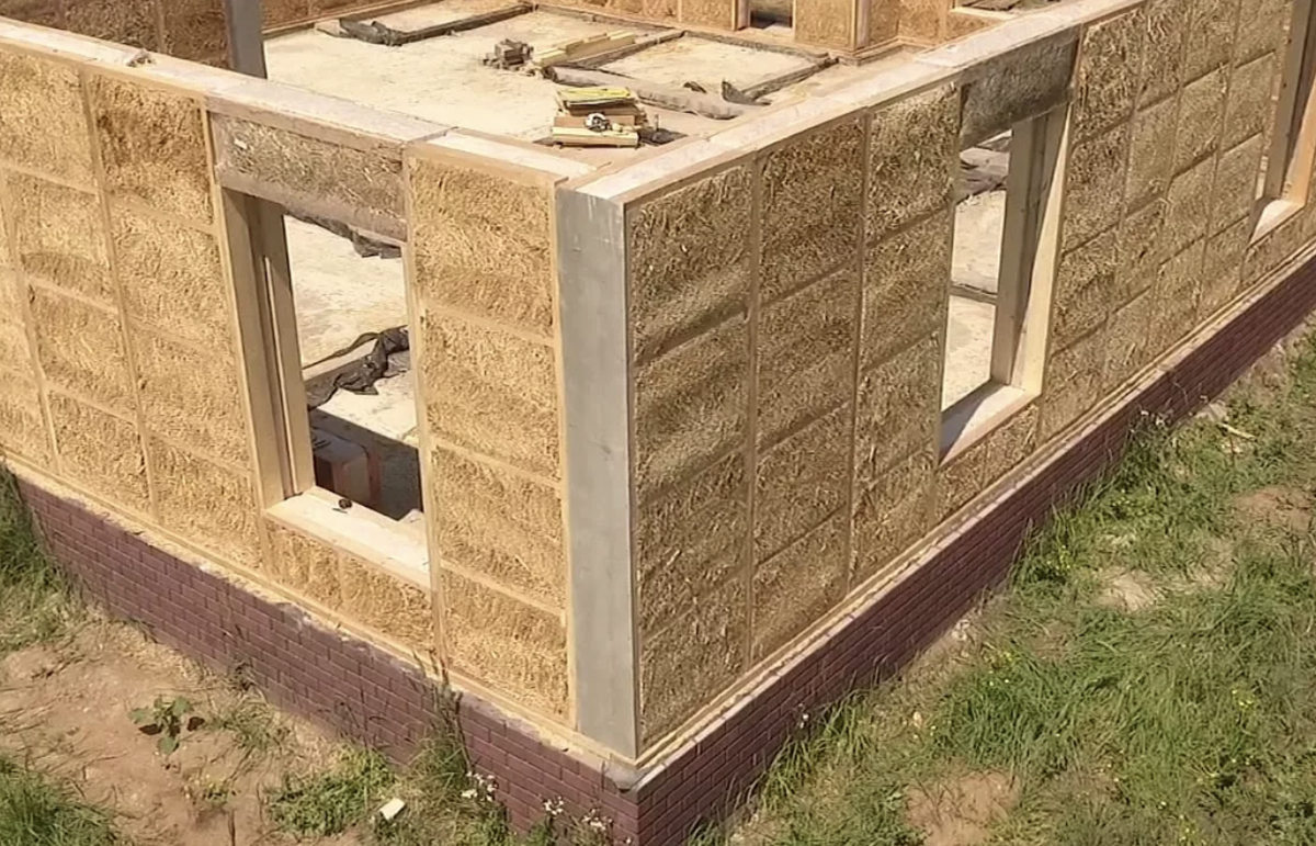 Солома, является и прекрасным экологически чистым строительным материалом, который прессуют в блоки, а затем блоки закрепляют глиной. Если говорить о примерных пропорциях, то речь идёт о 90 процентах соломы и 10 процентах глины. В результате американцы получают очень легкие, по сравнению с кирпичом строения, построенные из достаточно прочных блоков, с массой преимуществ. Во-первых, на строительстве такого дома вряд ли можно разориться. Стоимость соломы в качестве строительного материала сравнительно мала. Во-вторы