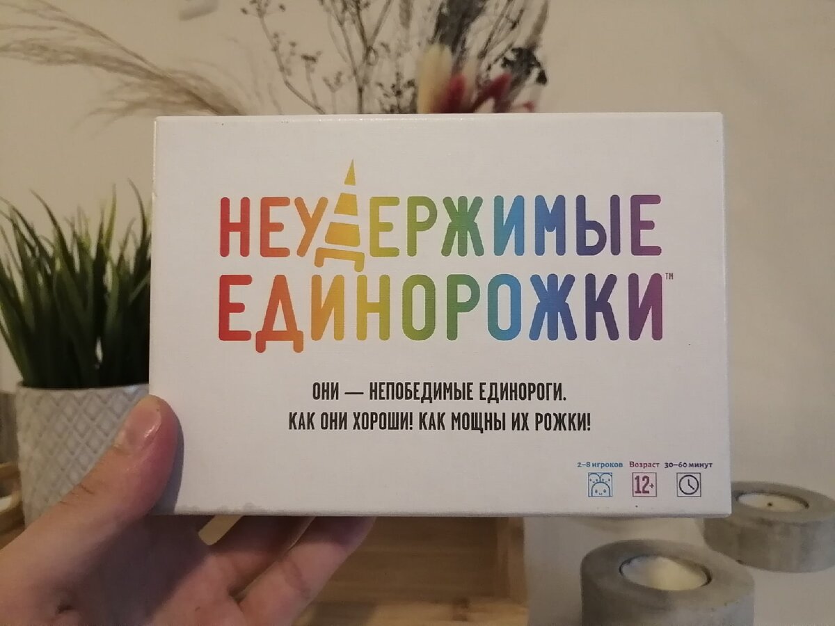 Обзор настольной игры «Неудержимые единорожки» «Неудержимые единорожки» — вечериночная настольная игра для 2-8 игроков. Цель игры — собрать перед собой 7 единорожек. Игроки по очереди берут карты из колоды. После этого играют 1 карту: единорожку, бонус, дебаф, или берут дополнительную карту. И так до тех пор, пока кто-то не соберёт в своём «стойле» 7 единорогов. Игра по духу ближе всего «Взрывным котятам» и «Манчкину»: игроки собирают перед собой карты, но каждый старается помешать противнику собрать нужное для победы количество. Даже если вы не играли в «Котят» или любой из «Манчкинов», то с игрой всё равно разберетесь за 10-15 минут. В среднем одна партия идёт 30-40 минут. Отдельная приятность — сразу можно играть командой в 8 человек. Для «Котят» и «Манчкина» в таком случае пришлось бы использовать ещё одну колоду. Я играл в «Единорожек» со своими друзьями после рабочего дня и с шестиклассниками на смене в городском летнем лагере. Друзья схватили азы быстрее, но шестикласники сильне
