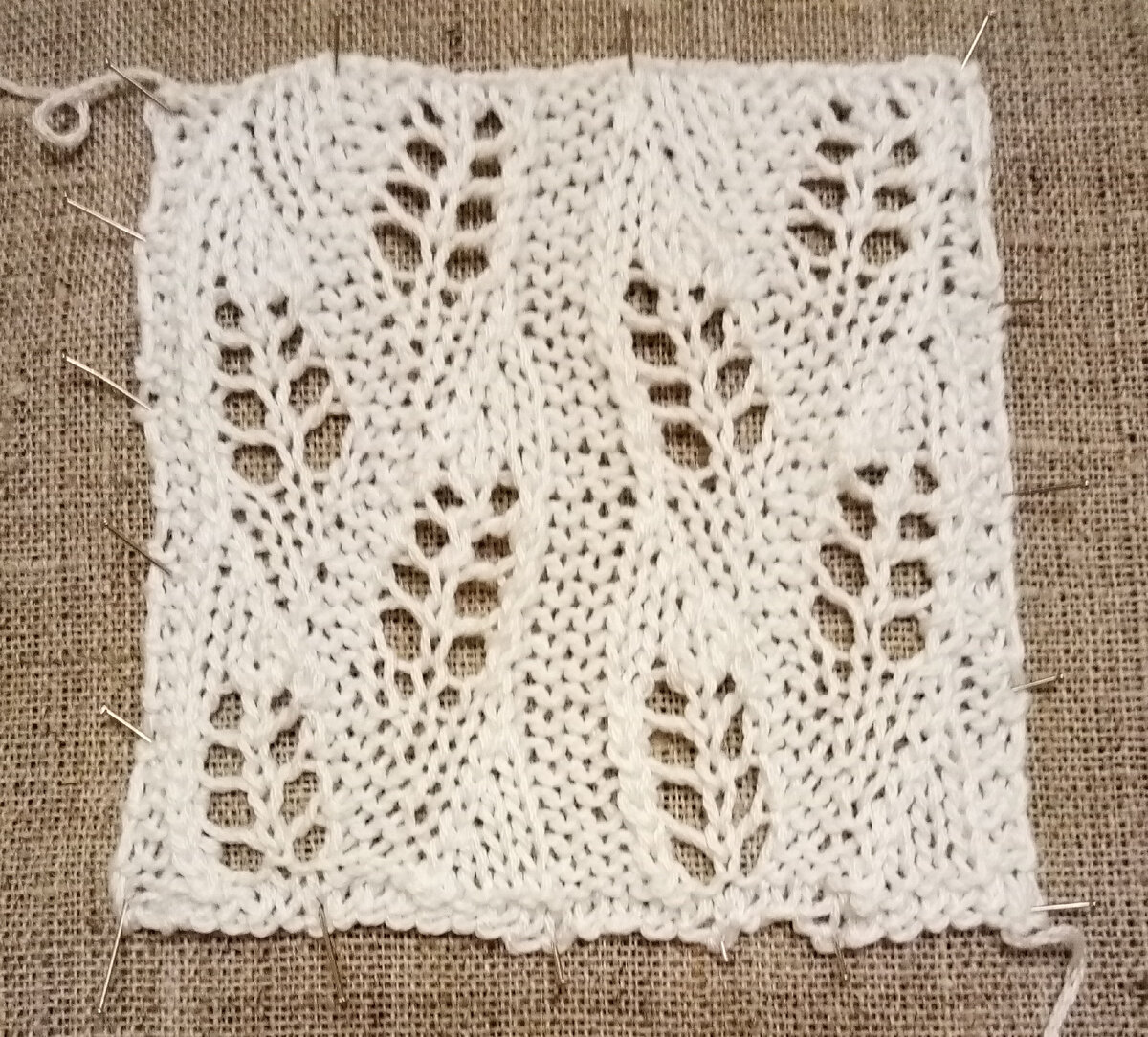 Симпатичный узор нашла. Точно сказать не могу - то ли колосья на нем, то ли початки. Главное, нравится, как они выглядят на вязаном полотне. Узор получается вертикальный и слегка волнистый. Образец связан спицами № 2,5, нитка из хлопка. Размер его получился 10х10 см. Ниже приведена схема, по которой связан образец. Для наглядности на образце в ширину связано два рапорта и два рапорта в высоту. Между рапортами в ширину дорожка в 3 изнаночные петли. Что ж, жары стало меньше, скоро пора будет начинать думать об осеннем гардеробе, посматривать на пряжу в магазинах, прикидывать свои возможности, откорректировать предпочтения для грядущей смены сезона. Желаю получить удовольствие от этого процесса. Пусть вам захочется связать что-то новое, яркое, интересное. Приятных находок!