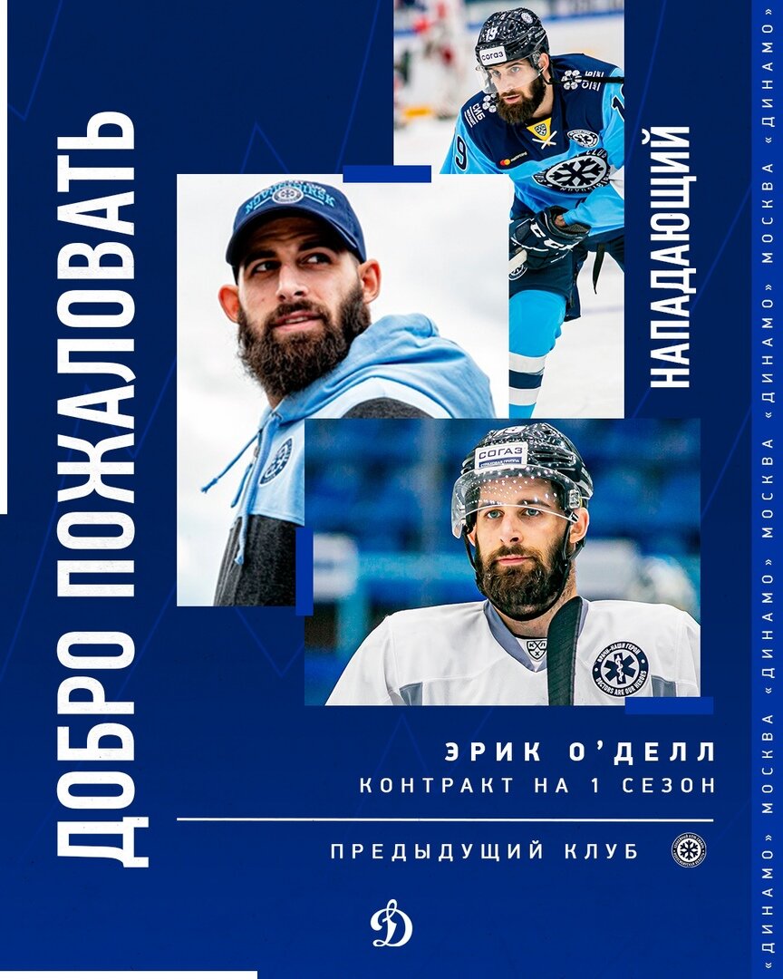 Канадский нападающий пополнил ряды бело-голубых Карьеру хоккеист Эрик О’Делл начал в родной стране. В Канаде игрок выступал в хоккейной лиге Онтарио, завоевал золотую медаль на Юниорском чемпионате мира в 2008 году и представлял команду на Матче всех звезд своей лиги. В Американской хоккейной лиге О’Делл играл за команду «Чикаго Вулвз», из которой перешел в «Виннипег Джетс». В составе «истребителей» он забросил свою первую шайбу в НХЛ в 2014 году, но уже в следующем сезоне покинул клуб в качестве свободного агента и перешел в «Оттава Сенаторз». Спустя еще один год нападающий принял решение продолжить профессиональную карьеру в КХЛ. За этот период форвард успел сыграть за ХК «Сочи», «Металлург» и «Сибирь». В минувшем сезоне 31–летний канадец провел всего 9 матчей в рядах новосибирской команды, пропустив большое количество игр из-за травмы, полученной в октябре прошлого года. Всего на счету О’Делла 228 матчей в КХЛ и 121 (57+64) очко. Контракт Эрика О’Делла с московским «Динамо» рассчита