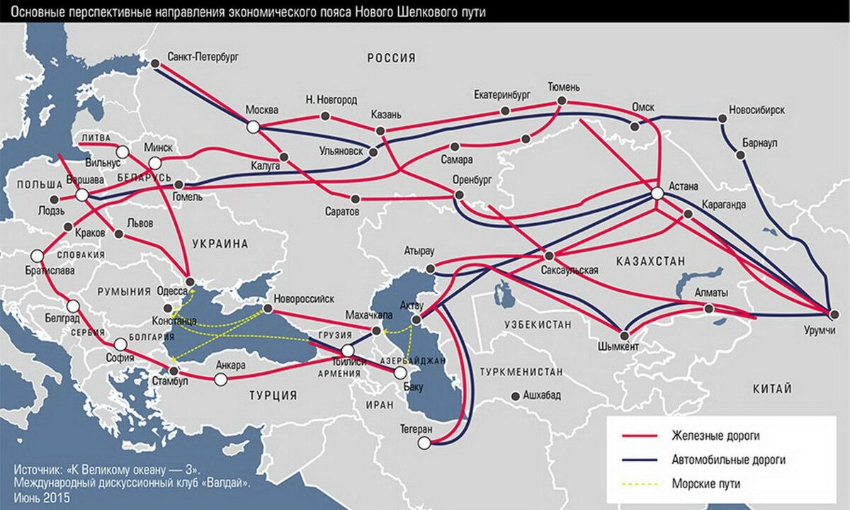 8 мая 2015 года президент РФ Владимир Путин и председатель КНР Си Цзиньпин подписали совместное заявление о сотрудничестве России и Китая в рамках Евразийского экономического союза и трансъевразийского торгово-инфраструктурного проекта Экономического пояса Шелкового пути. Продвигаемый Китаем проект «Нового Шелкового пути» предполагает не просто возрождение древнего транспортного маршрута между Востоком и Западом, но масштабное преобразование всей торгово-экономической модели Евразии, и в первую очередь - Центральной Азии. По словам Владимира Путина, «речь идет о выходе в перспективе на новый уровень партнерства, подразумевающего общее экономическое пространство на всем Евразийском континенте».