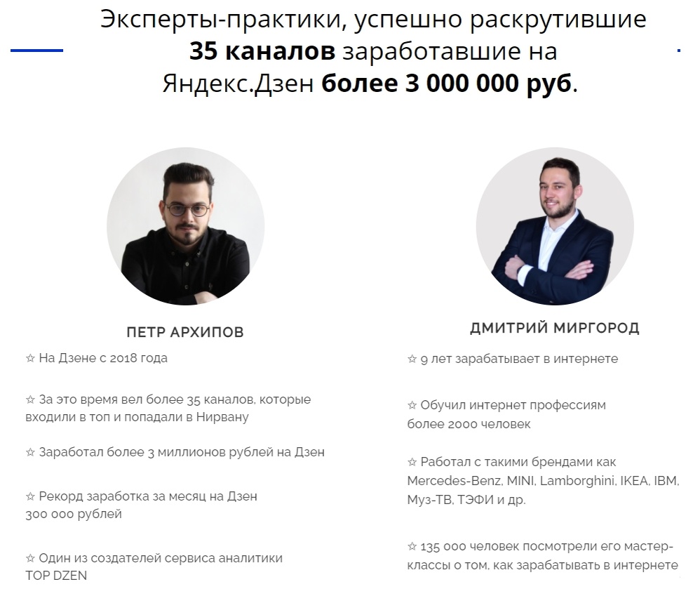 Расскажу о том, как, наконец-то, решился пойти в бизнес и под скорые 60 годов запрыгнул в вагончик товарно-денежных отношений уходящего поезда жизни. Попыток уйти из под-найма было несколько и каждый раз не хватало решимости: нужно всё-таки сделать некий серьёзный поступок и принять решение и - навсегда, уже не оглядываясь, уходить в будущее! Полагаю, что сейчас уже, при этом не важно как поведёт себя мировая экономика , возьму беру ноги в руки и по-шагово иду в рынок продаж лучшего самого себя - нужно вкладываться в свой интеллект прежде, чем вступить на путь конкуренции с молодыми бойцами. И перовое, что сделал... пошёл учиться за денежки. Учиться осваивать дзен и становиться автором канала каналов. Идей как всегда куча мала, и жена упрекает, мол, собираешься жить вечно? Учусь в Академии Яндекс-Дзена. Купил "Курс Денежный Дзен" в рассрочку в две оплаты. Вот эти ребята в скане меня каким-то образом убедили, что игра стоит каких-то горящих свеч. Правда, следует сказать, что в прошло