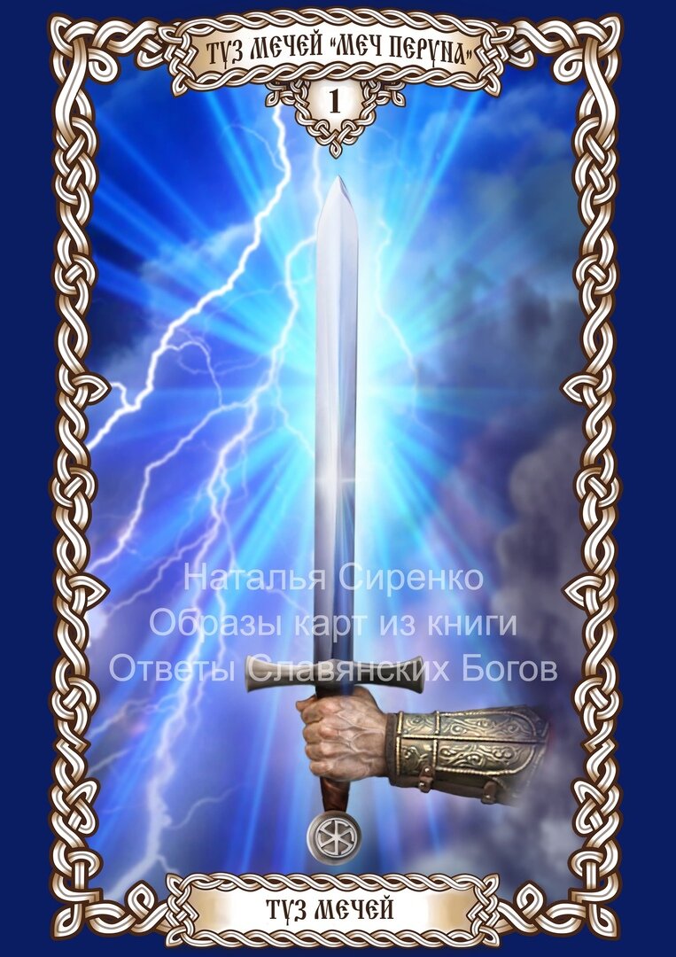 ...И все же - чувствуется "макушка лета"...Солнце - на окорот, лето - на жару...Урожай поспевает - в моем саду и огурцы, и помидоры красные, и малина, и абрикос, и вишня..да что там - Даждьбогово Солнце накормит тех, кто потрудился во время свое...И чем дальше Светило наше отходит от Купальских Энергий, тем больше проявляются ратайские Перуновы Энергии...Хочу поделиться кусочком из своей книги "Ответы Славянских Богов", вышедшей в прошлом году..в свободной продаже осталось всего пять!!! экземпляров..Второе издание книги выйдет, я думаю, уже вместе с моей колодой Славянского Таро...Итак, - Карту "Туз Мечей" я назвала "МЕЧ ПЕРУНА"...Послушайте: ..Имя славянского Бога-Громовержца Перуна можно понимать дословно как "разящий"...Перун-Громовержец имел Меч, Палицу, Лук и Стрелы...Но главным его оружием был и остается Перунов Меч.Славяне - поклонялись мечу, клялись им в минуты испытаний, складывали оружие поверженного противника у подножия Меча Перунова..Культ Меча Перуна был распространен от